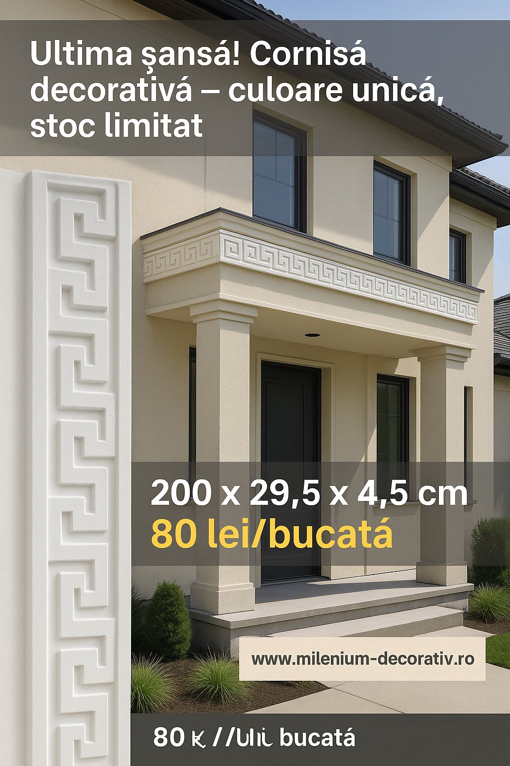 - Perfect pentru fațade: Ideal pentru decorarea fațadelor casei, acest brâu adaugă eleganță și rafinament. Poate fi utilizat și pentru delimitarea diferitelor zone ale clădirii.